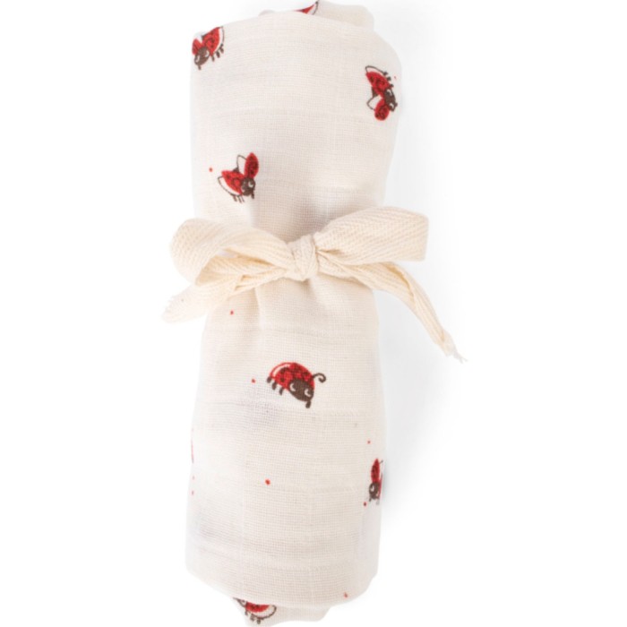 Muslinfilten är tillverkad av 100 % ekologisk, GOTS-certifierad bomull och kan tvättas i 40 grader. (Observera att tyget krymper något efter tvätt.)