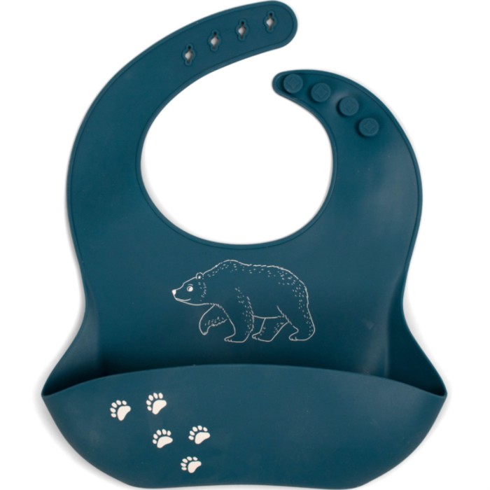FILIBABBA Silikonhaklapp är mjuk och bekväm för barnet att bära, med ett gulligt björnmotiv. Den rymliga fickan i botten fångar upp mat och dryck, och med hjälp av de stora tryckknapparna kan du anpassa storleken på haklappen efter ditt barn. Tillverkad av flexibel och mjuk silikon, ett mycket slitstarkt material som kommer att hålla för många måltider.