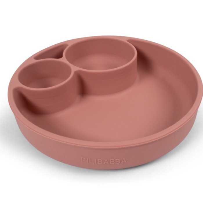 FILIBABBA Silikontallrik med fack är en praktisk tallrik som kanske gör måltiderna enklare. Tallrik är framtagen i samarbete med näringsfysiologen Signe Severin, och den minimalistiska designen och de fina färgerna är tänkta att hjälpa barnet att upptäcka maten på egen hand.