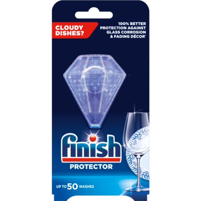 Finish Protector Glans & glasskydd skyddar mot fläckar på din disk när du diskar i diskmaskin. Passar alla diskmaskiner och diskmedel. Räcker i upp till 50 diskningar.