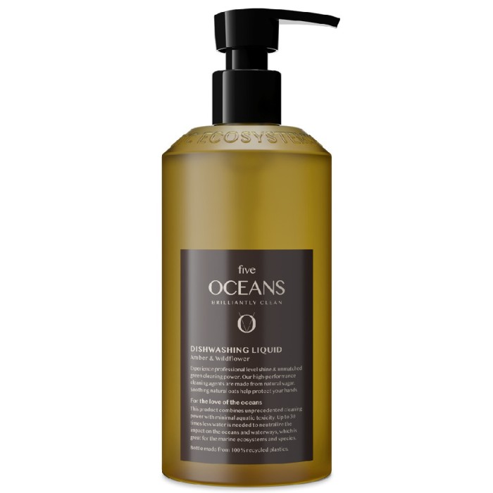 Five Oceans Dishwashing Liquid är ett flytande diskmedel som diskar effektivt.