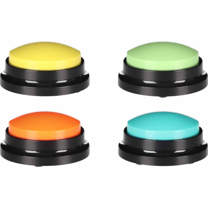 HS Karao Audio Button (1 styck) är en inspelningsbar knapp som är enkel att använda, och du kan spela in flera instruktioner. Materialet är plast och knappen har en diameter på 8,8 cm.