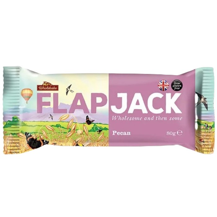 Flapjack är en klassisk brittisk havrebar. Denna variant av Flapjack är smaksatt med pecannötter.