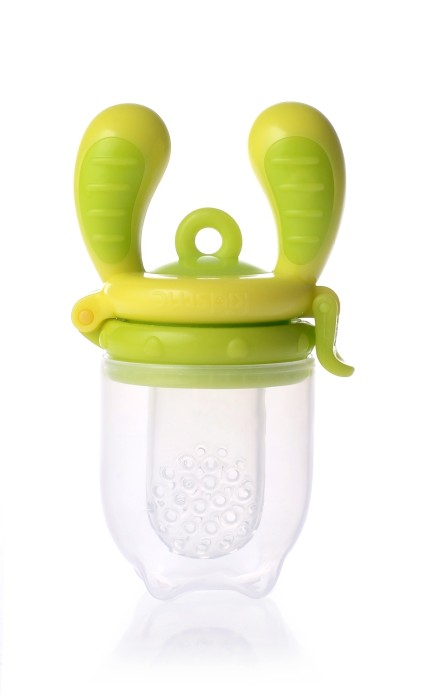 Mixa eller skär mat eller frukt i små bitar och lägg i silikonbehållaren. Låt barnet tugga och suga på egen hand. När barnet börjar få tänder kan man lägga i en liten isbit för att lindra.