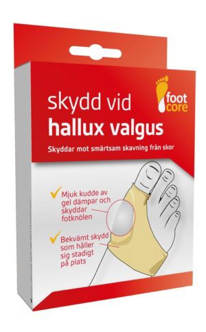 Skyddet minskar trycket och friktionen mot huden för att lindra smärta vid hallux valgus.