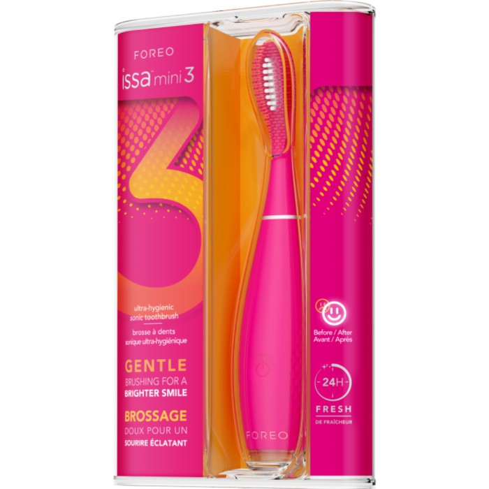 Forea Issa Mini 3 är en kompakt version av Foreas soniska eltandborste. Mini 3 passar dig som föredrar ett mindre borsthuvud. Borsthuvudet är gjort av silikon.