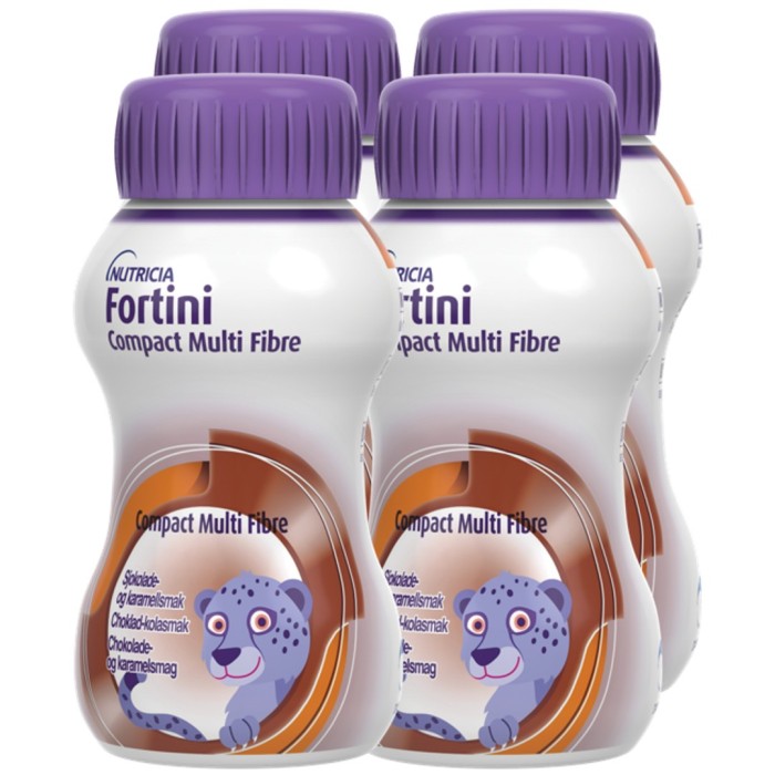 Fortini Compact Multi Fibre är en kompakt, energirik och näringsmässigt komplett näringsdryck för barn 1-12 år. Detta är en färdigblandad dryck med konsistens som en mjölkdrink. Laktosreducerad och glutenfri. Smak av choklad och kola. Dosering enligt ordination.