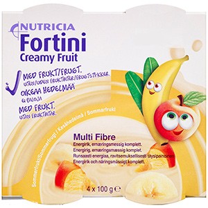 Fortini Creamy Fruit kan ges som tillägg till barnets mat, eller tillfälligt helt ersätta annan mat. Innehåller mf6, en glutenfri kostfiberblandning av lösliga och olösliga fibrer som motsvarar fibersammansättningen i vanlig mat. Smakar bäst väl kyld. Dosering: Enligt ordination. Se till att säkerställa vätskebehovet om produkten används som enda näringskälla. Olämplig för barn som kräver en fiberfri kost. Oöppnad förpackning förvaras i rumstemperatur. Öppnad förpackning förvaras i kylskåp i högst 24 timmar.