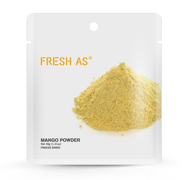 Fresh As Mangopulver är gjort på frystorkad mango av högsta kvalitet. På Fresh As väljer man ut perfekt mogna frukter till frystorkningen, detta för att maximera både smaken och färgen. När frukten frystorkas är vattnet det enda som försvinner, alla näringsämnen blir kvar.