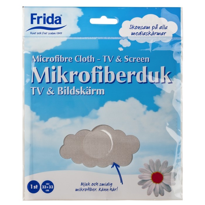 Frida Mikrofiberduk TV & Bildskärm är 33x33 cm och kan tvättas i 60 grader.