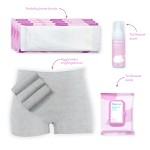 Frida Mom Mamma Kit - Efter förlossningen innehåller produkter som underlättar och ger lindring efter förlossningen. Kitet innehåller bland annat hygieniska engångstrosor, snabbkylande maxibindor för att lindra värk och svullnad efter förlossningen och trollhasselprodukter som ger en svalkande känsla för hela underlivet.