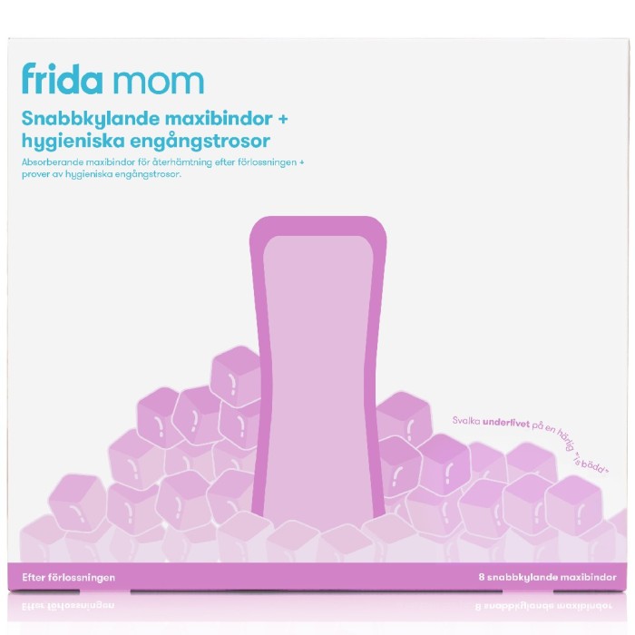 Frida Mom Snabbkylande maxibindor är en engångsbinda anpassad att använda efter förlossningen. Bindan har en lindrande kyleffekt samtidigt som den har maximal uppsugningsförmåga.