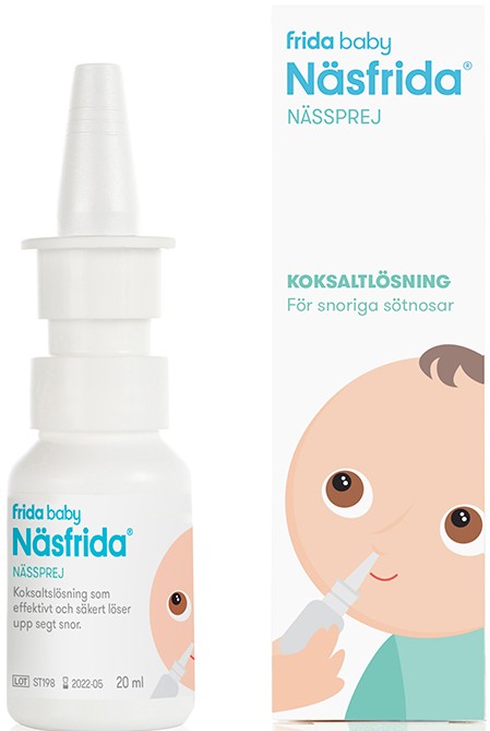 För barn från 0 månader. Spraya 1-2 gånger per näsborre. Håll barnet upprätt när du använder nässprayen. Vid behov kan du använda NäsFrida Nässug (kan köpas separat) för att suga rent i näsan. Spreja då först nässprej i barnets näsborrar, och använd sedan nässugen för att varsamt suga ut snoret ur barnets näsa. Hållbarhet öppnad flaska 4 månader.
