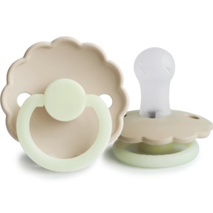 Nappen "Night" har en ring som lyser i mörkret. (Håll nappen i ljuset några sekunder för att "ladda" den så att den syns i mörkret.)