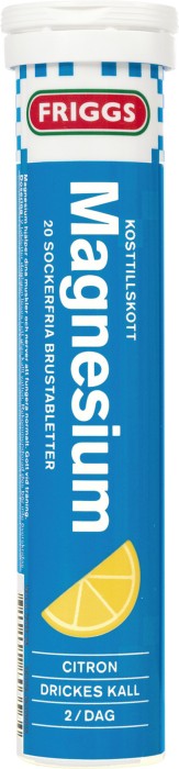 Friggs Magnesium Brus är sockerfria och snabblösliga brustabletter med citronsmak.