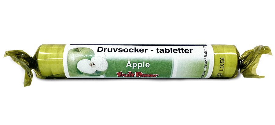 Fruit Power druvsockertabletter med smak av grönt äpple är tabletter som smälter snabbt i munnen och ger snabb energi vid behov. Druvsockertabletterna är runda och förpackade i en avlång rulle som är lätt att ha med sig i fickan eller i väskan.
