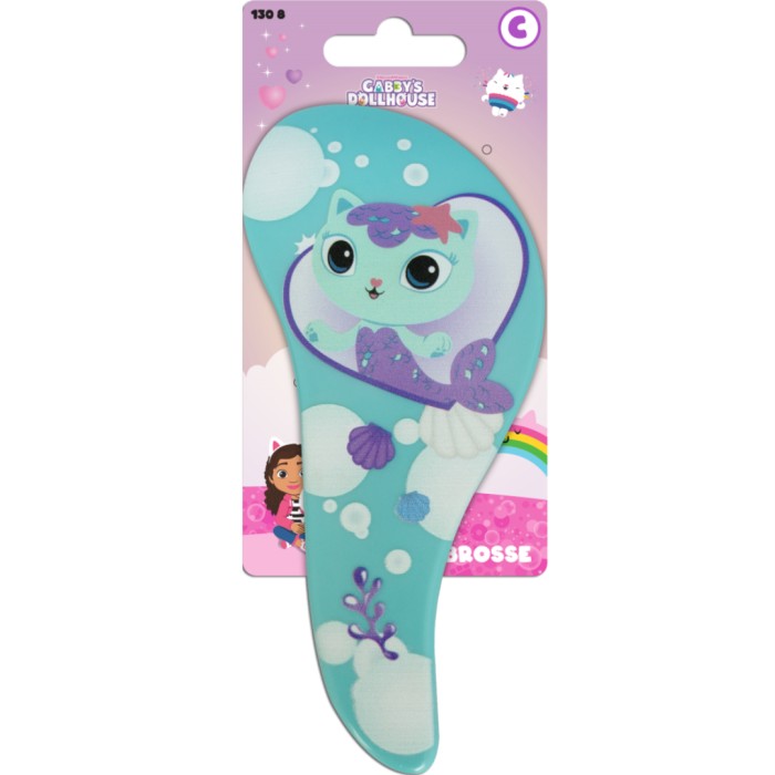 Gabbys Dollhouse Tangle Ease Mercat är en skonsam utredningsborste för barnets hår. Passar för alla hårtyper. Denna borste är turkos med figuren Mercat.