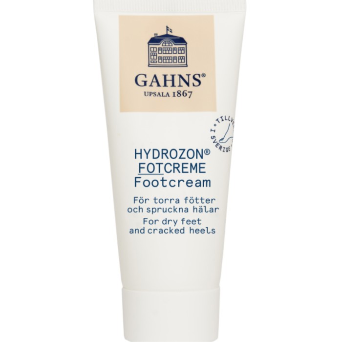 Gahns Hydrozon Fotcreme är en kräm för torra fötter och spruckna hälar. Krämen går snabbt in i huden och är behaglig att använda. Gahns fotkräm innehåller bisabolol som förebygger hälsprickor, och menthol och kamfer som har en kylande effekt. Krämens mjukgörande oljor och fuktgivande ingredienser mjukar upp huden.