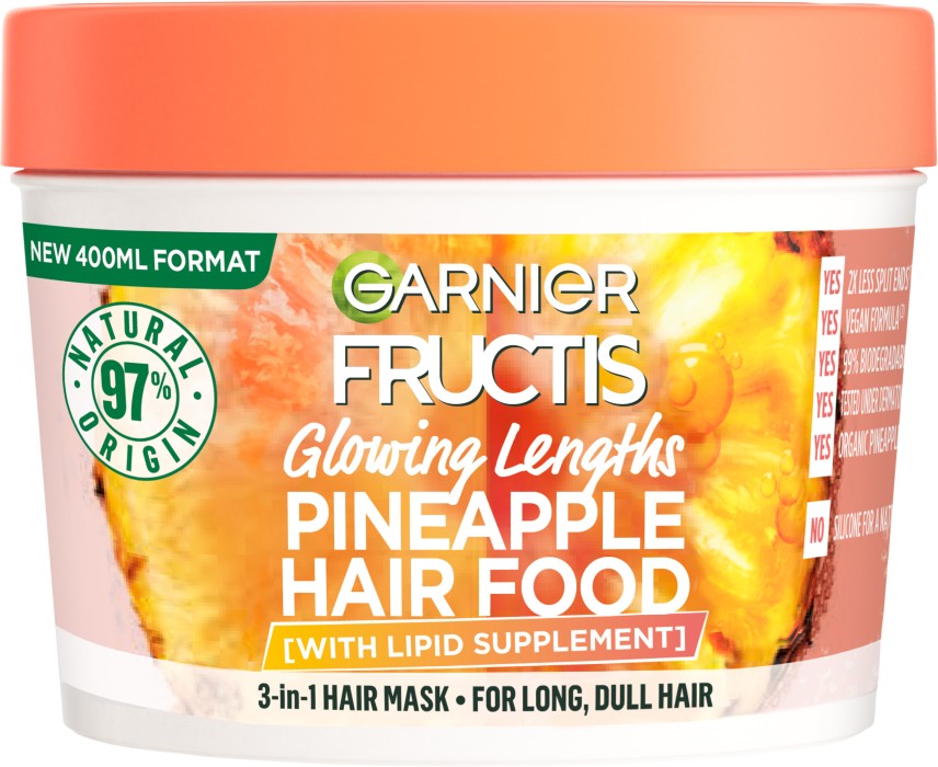 Garnier Fructis Hair Food Pineapple Glowing Lengths lystergivande hårmask för långt hår 400ml