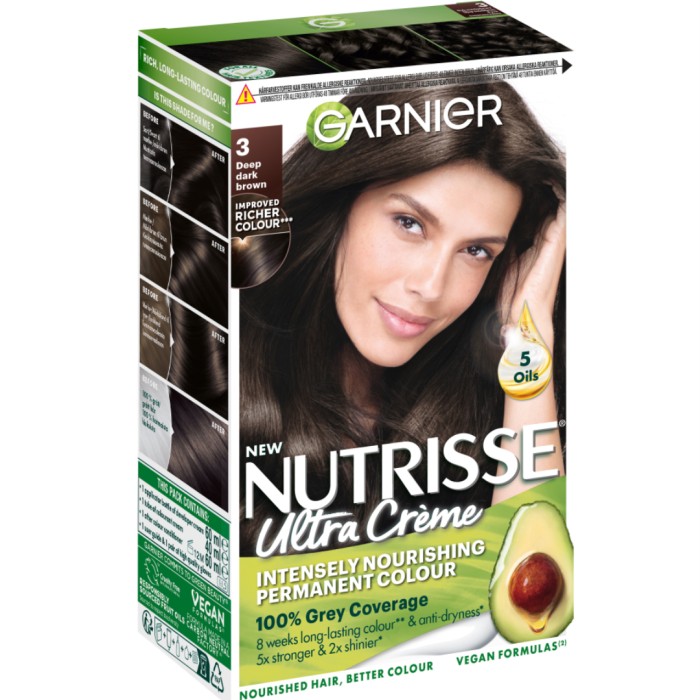 Garnier Nutrisse Ultra Créme är en intensivt närande permanent hårfärg. Ger ett fylligt och varaktigt färgresultat och 100 % gråhårstäckning. Nutrisse Ultra Crème är berikad med fem oljor för att ge näring till håret.