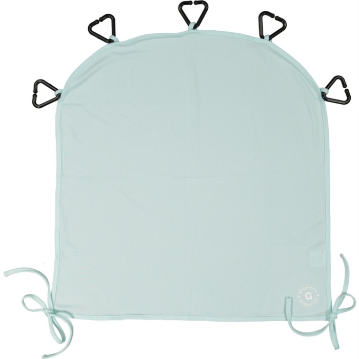 Geggamoja UV-gardin för barnvagnen. Med krokar för upphängning och snören för fästning. Passar de flesta barnvagnar.