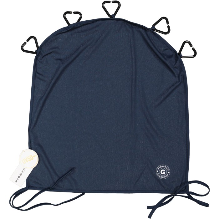 Geggamoja UV-gardin med krokar för upphängning och snören för fästning. Passa de flesta barnvagnar.