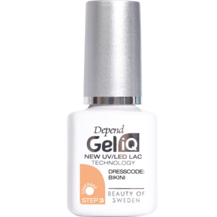 Depend Gel iQ är en lackbehandling som hjälper dig att få perfekt glansiga naglar med fem enkla steg - och som håller i upp till 14 dagar. Du behöver inte förbereda din naturliga nagel med någon primer, utan du rengör först naglarna med Gel iQ Pre-Cleanser innan du utför din lackbehandling. UV/LED-lampan som man ska använda är speciellt utvecklad med en härdningstid på 30 sekunder i varje applikationssteg. Efter att du härdat topplacket i lampan återstår rengöring med High Shine Cleanser, ett steg som ger naglarna fin glans och färgåtergivning. Lacket kan sedan tas bort med vegetabilisk specialolja i varmt vattenbad.