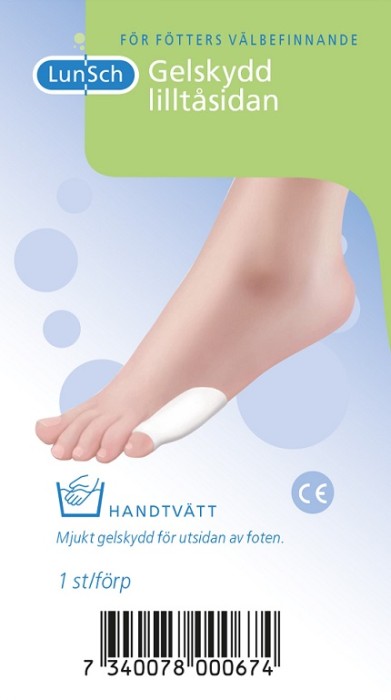 Mjukt gelskydd från LunSch för utsidan av foten. Träs på lilltån. En storlek. Passar både vänster och höger fot. 1 st/förpackning. Handtvätt.