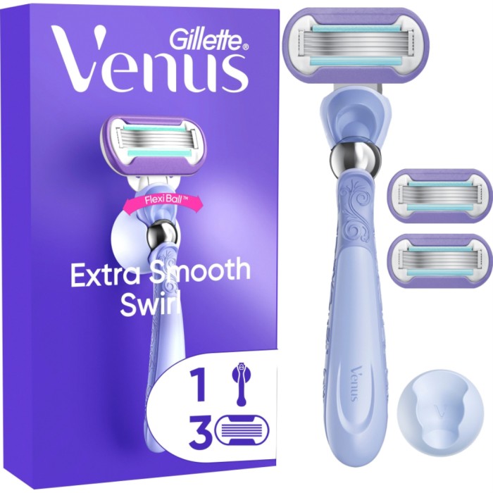 Gillette Venus Extra Smooth Swirl rakhyvel, 3 st rakblad, duschhållare