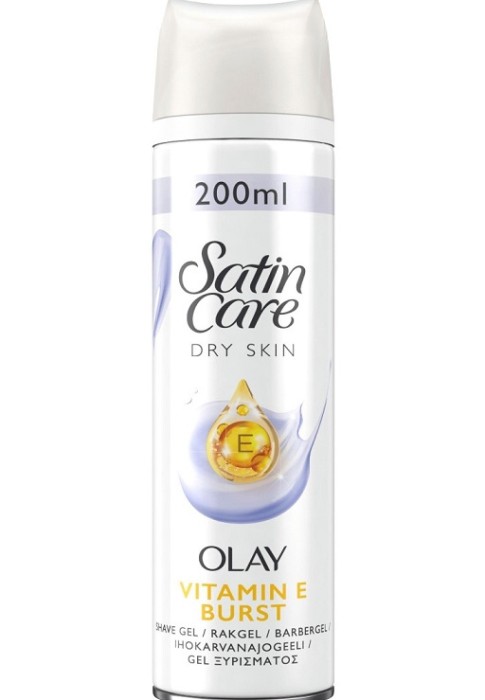 Gillette Venus Satin Care Olay Vitamin E Burst är en rakgel för kvinnor med torr hud. Rakgelen innehåller återfuktande ingredienser som hjälper till att hålla huden mjuk och len.