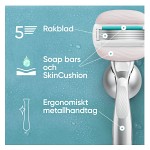 - Rakbladshuvud med 5 blad som glider över torr hud för en långvarig rakning