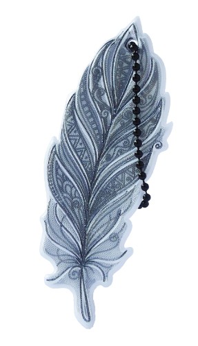 Denna fina Glimmis-fjäder fäster du enkelt på kläderna.