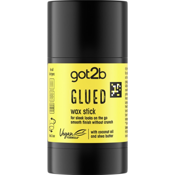 Med got2b Glued Wax Stick kan du skapa supersläta frisyrer som håller i upp till 24 timmar, utan att håret blir fett eller krispigt. Perfekt för dig som vill skapa en kladdfri look även när du är på språng. Stiftet tämjer torrt och frissigt hår med got2b:s unika blandning av kokosolja, ricinolja och sheasmör - för att säkerställa glansigt och återfuktat hår. Silikonfri.