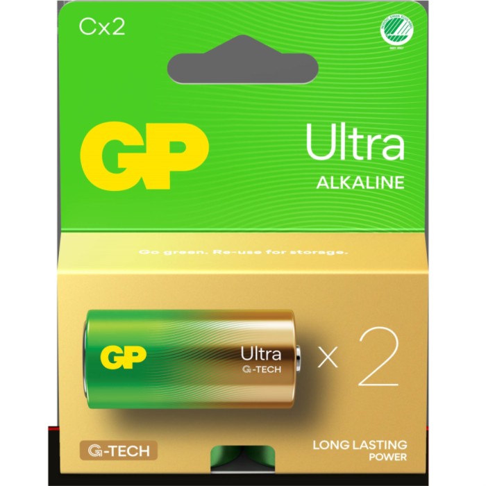 GP Batteri Ultra C/LR14 är ett kraftfullt batteri med lång livslängd och med patenterad konstruktion för att förhindra batteriläckage. Förpackningen innehåller 2 st batterier.