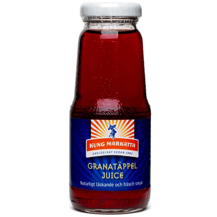 Kung Markatta Granatäppeljuice är frisk och fräsch i smaken samt naturligt rik på vitaminer och antioxidanter. Tack vare dess egenskaper kallas granatäpple ofta för superfrukt.
