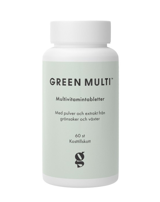 Green Multi är ett kosttillskott med multivitaminer. Green Multi innehåller 13 olika vitaminer och 10 mineraler, och desutom pulver och extrakt från grönsaker och växter, bland annat spirulinapulver. Vegansk.