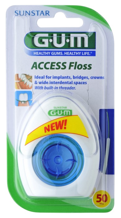 GUM Access Floss är en tandtråd för rengöring under och runt implatat, tandreglering, broar och kronor. Tandtråden expanderar och anpassar sig till olika storlekar av interdentala mellanrum.