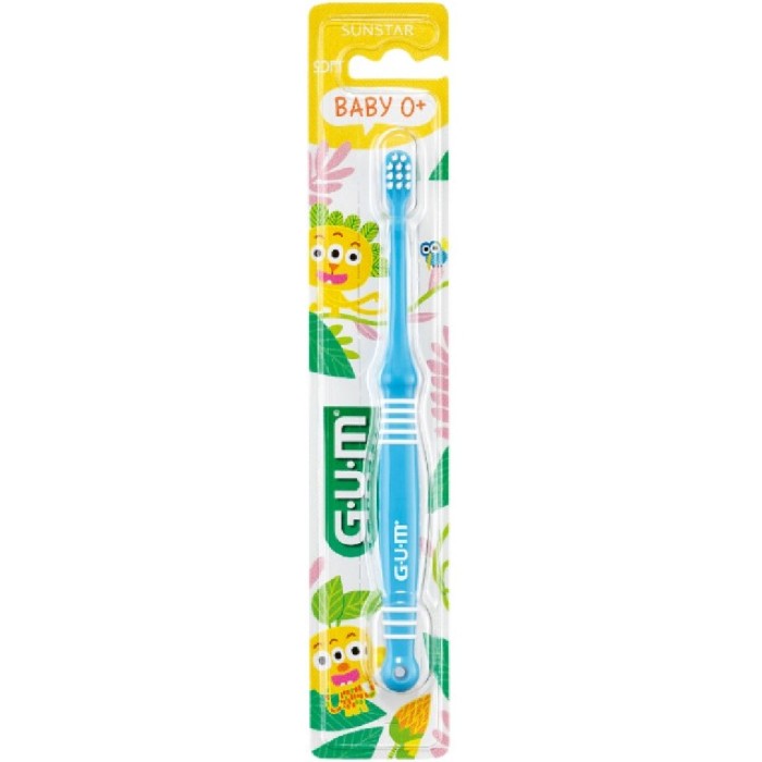 GUM Baby tandborste 0+ år är en tandborste med ett extra litet borsthuvud som passar det lilla barnets mun. Borsten har ett längre handtag för att underlätta förälderns grepp om tandborsten. Tanborstens mjuka borst rengör skonsamt tänderna och tar bort plack vid tandköttskanten. Borstens klyvna strån gör rengöringen mildare och effektivare.