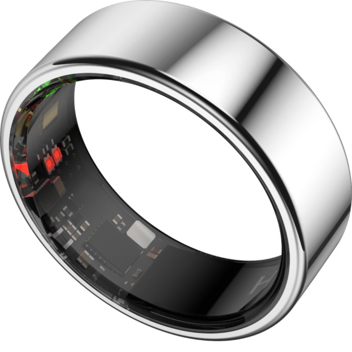 Denna ring är i storlek 8 i nyansen Silver. Ringen har en tunn och diskret design och ser ut som ett vanligt smycke (är 7 mm bred och 2 mm tjock), samtidigt som det samlar in hälsodata under dygnet alla timmar. Ringen väger ca 3 gram.