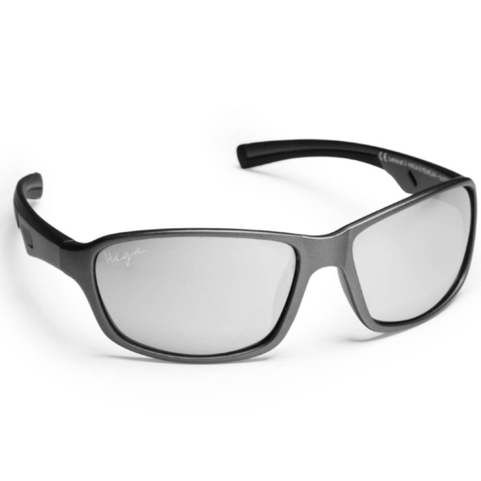 Haga Eyewear Spitfire Matt Grey är ett par solglasögon för barn i åldern 6 - 12 år. Spitfire är gråa barnsolglasögon i en wayfare-modell med en grå spegellins.