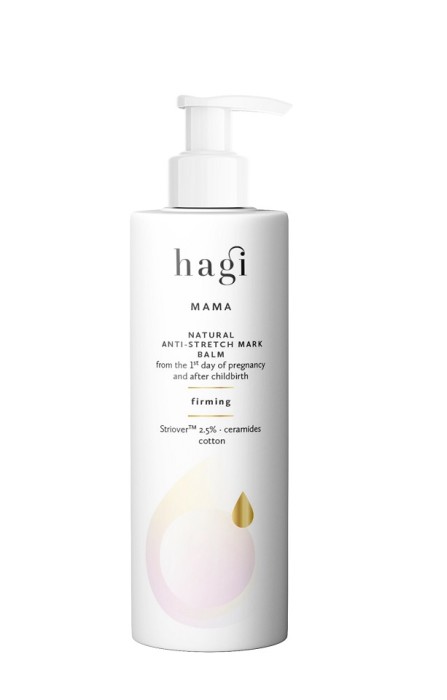 Hagi Mama Natural Anti-Stretch Mark Balm förebygger bristningar under och efter graviditeten. Anti-Stretch Mark Balm är ett helt naturligt balm som förebygger bristningar, s.k. strior, som kan uppkomma vid graviditet. Kan användas från första dagen på graviditeten till minst två månader efter förlossningen.