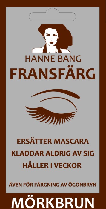 Hanne Bangs fransfärg finns i nyanserna svart och mörkbrun. En förpackning räcker till ca 12 färgningar.