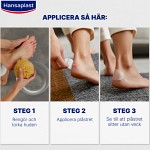 Hansaplasts skavsårsplåster ger en effektiv behandling av skavsår genom att både lindra och läka. Plåstret lindrar omedelbart smärta från tryck och friktion och förseglar det skadade området på ett säkert sätt mot smuts och bakterier. Hydrokolloidtekniken främjar läkning av blåsorna. Den extra starka vidhäftningen håller plåster på plats i flera dagar.