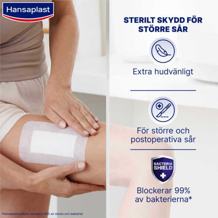 Hansaplast Sensitive är extra hudvänliga plåster av ett andningsbart material som fäster säkert huden, men är smärtfria att ta bort. Den extra stora sårdynan skyddar såret utan att fastna i det, och ger komfort under användning. Sterilt och extra hudvänligt plåster som skyddar såret mot smuts och bakterier.