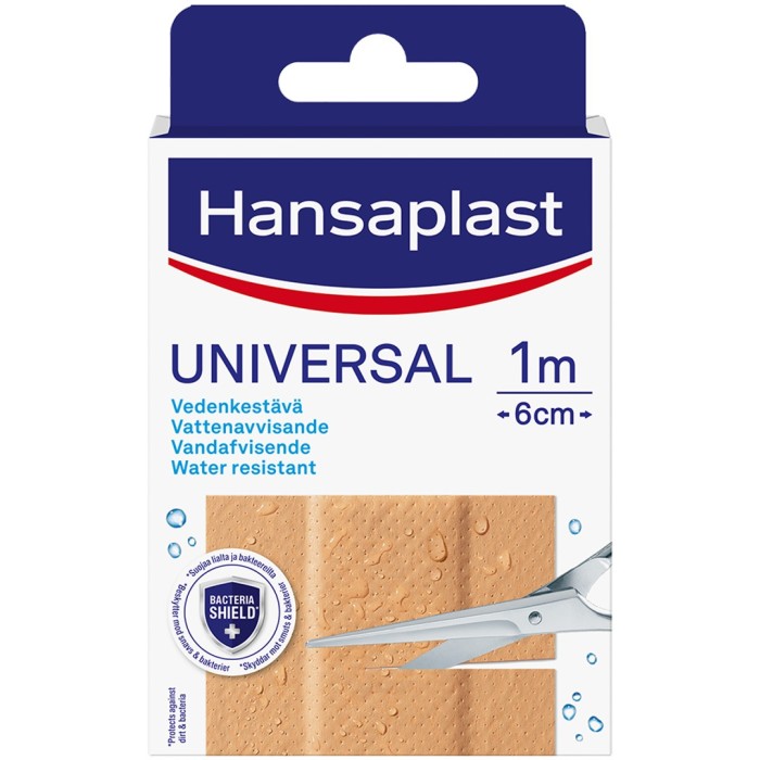 Hansaplast Universal är ett antibakteriellt plåster som kan klippas till för att passa. Passar för alla typer av småsår.