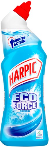 Harpic Eco Force Original är en flytande toalettrengöring som rengör toalettstolen effektivt och är snällt för miljön.