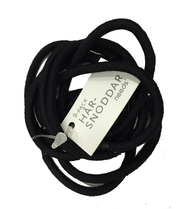 12 st svarta hårsnoddar utan metalldel som kan slita på håret.