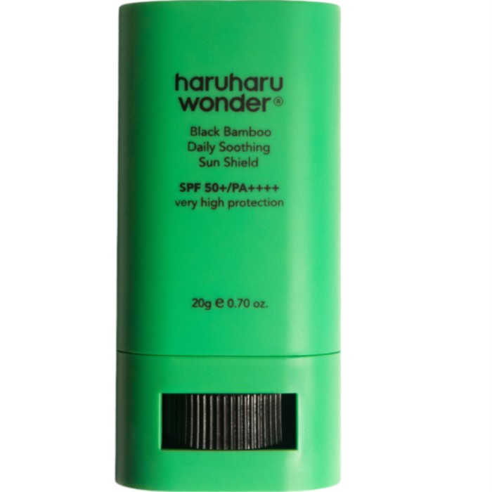 Haruharu Wonder Black Bamboo Daily Soothing Sun Shield är ett fuktgivande solstift med mattande effekt som ger ett effektivt UVA-skydd. Med sin innovativa "Air Fence"-teknologi med ultrafina, genomskinliga pulver ger sticket en matt och lätt finish. Motverkar glansighet och känns inte klibbig. Sticket innehåller ett patenterad bambuskottsextrakt, bambublad och vatten, och återfuktar och ger näring och antioxidantskydd till huden. Ectoin och betain skyddar och återfuktar huden. Niacinamid och adenosin ger huden lyster och hjälper till att minimera fina linjer. Har en mild och svalkande effekt och känns uppfriskande.