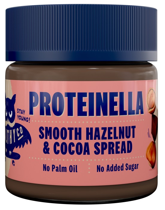 Proteinella Smooth Hazelnut & Cocoa Spread från HealthyCo är en nötkräm med smak av kakao. Kan bres på mackan, användas till pannkakor, våfflor eller i gröten. Nötkrämen är proteinberikad och innehåller inte något tillsatt socker. Innehåller sötningsmedel.