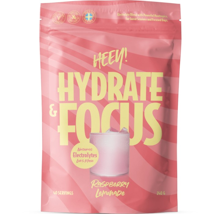 Heey! Hydrate & Focus Electrolytes är en elektrolytmix med magnesium, kalium och natrium. Pulvret innehåller även vitamin B6 och B12. Magnesium, vitamin B6 och B12 bidrar till normal energiomsättning, nervsystemets normala funktion, och till att minska trötthet och utmattning. Vitamin B6 och B12 bidrar även till normal psykologisk funktion.